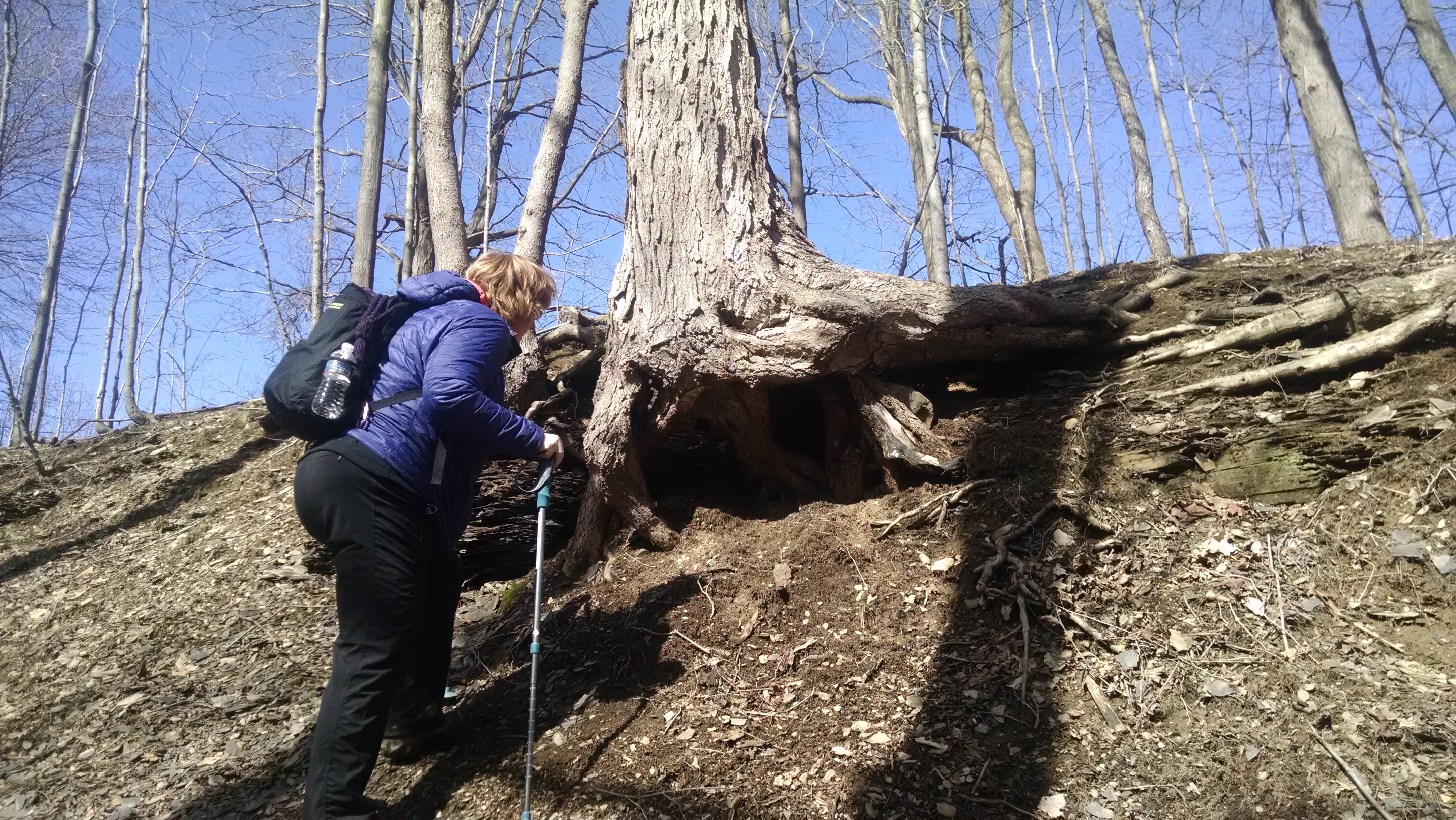 This day was a big driving day. I think I put 150 miles on my car or something outrageous like that. The next park was Chestnut Ridge. I love this hike. There were some sketchy sections with ice and snow still covering some of the narrow paths on the ravines. One false move and splat. Hiking solo I tend to talk to myself sometimes. As I was tediously picking each step on the ice I repeated to myself, “You are brave. You are careful. You will not fall. You will be okay.” It helps me to say positive things to myself when I am worried.